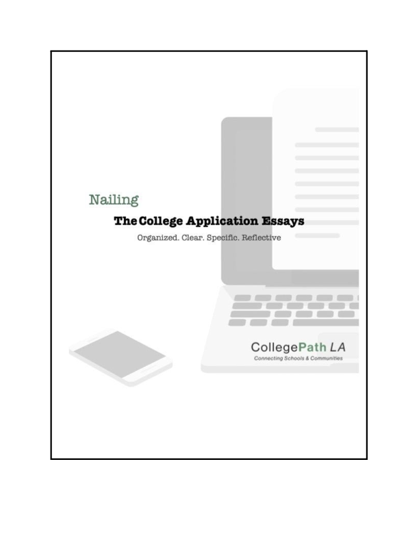 Nailing the College Application Essays: a 26-page roadmap to guide students through the process, including the University of California personal insight questions, the common application used by many private universities and sample essays written by Marshall High School students.
